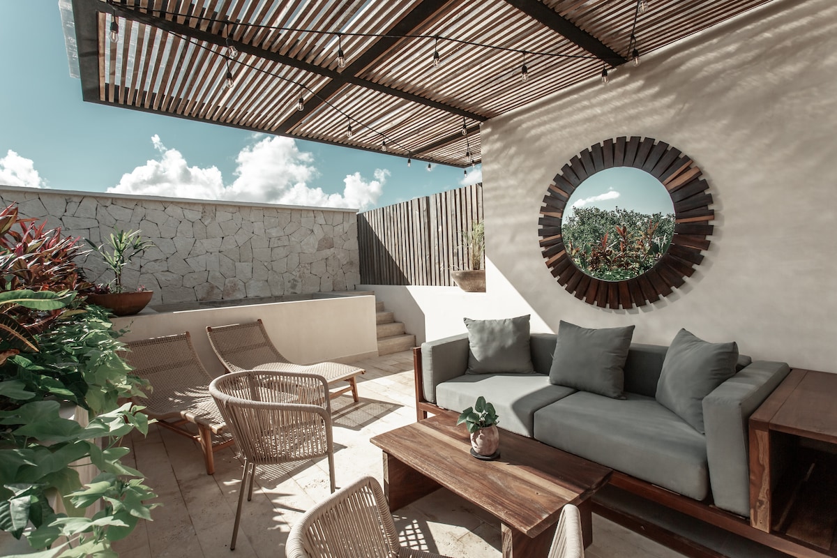 - Miejsca na pobyt z przestrzenią do siedzenia na świeżym powietrzu Tulum