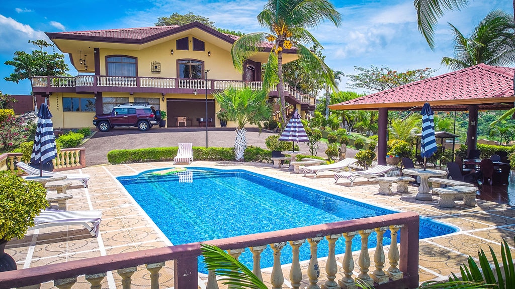 Pobyt na szczycie świata w tym prywatnym domu w dżungli, który ma niesamowity 3-poziomowy basen i wannę z hydromasażem oraz centralną lokalizację dla nieograniczonych przygód. Widok obejmuje całą przestrzeń na zewnątrz, widać Cararę aż do Manuel Antonio. 3 apartamenty główne z 9 łóżkami. Wydaje się, że jest milion mil stąd, ale tylko 15-20 minut do centrum Jaco i plaż, w tym Hermosa i Herradura. 1 godzina do Parku Narodowego Manuel Antonio i 1,5 od międzynarodowego lotniska w San Jose.