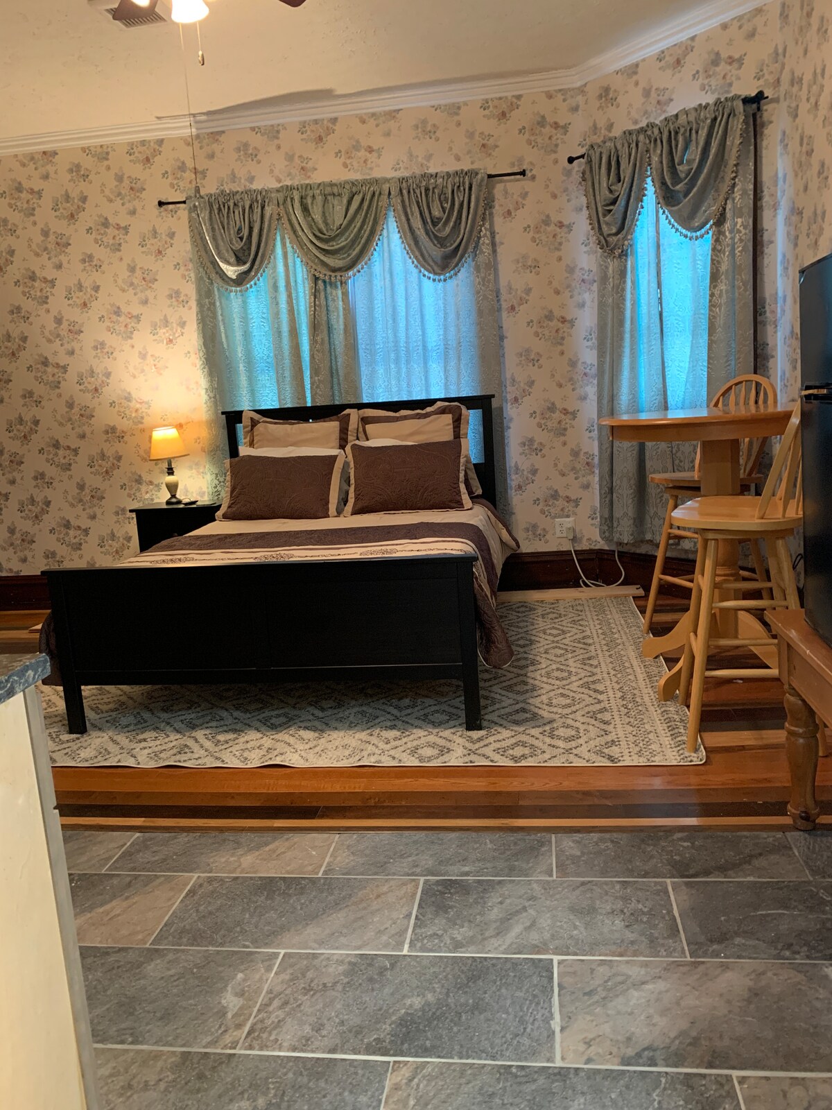 Z drugim piętrowym widokiem na Historic Downtown District, to imponujące studio z wielkim łukiem znajduje się tuż przy foyer na piętrze. Wbudowane marmurowe biurko, kominek, szafa cedrowa i kilka okien z widokiem na Main Street. Prywatna łazienka i aneks kuchenny sprawiają, że ten dom jest wygodny i wydajny.