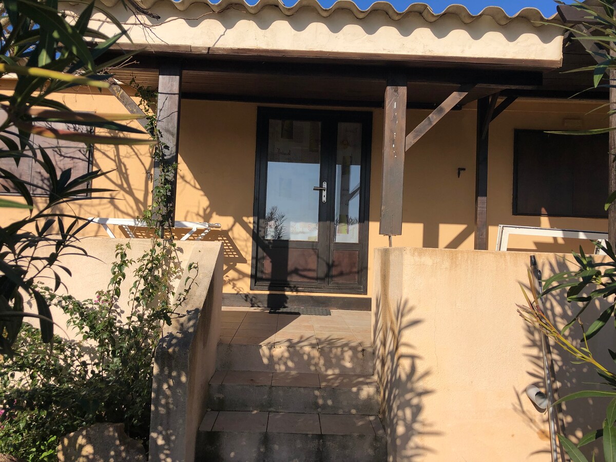 Bungalow odnowiony w 2019 roku na terenie prywatnej posesji o powierzchni 4000 m2, położony 5 minut od portu Bonifacio i 5 minut od plaż Spérone. Składa się z sypialni z łóżkiem o szerokości 160 cm, telewizorem, garderobą, łazienki z kabiną prysznicową i umywalką, suszarki do włosów, niezależnej toalety. Kuchnia wyposażeniem: płyta indukcyjna, lodówka, przybory kuchenne, ekspres do kawy Nespresso, pralka, zmywarka. Prywatny taras ze stołem, krzesłami, leżakami, parasolem. wifi przede wszystkim w mieszkaniu