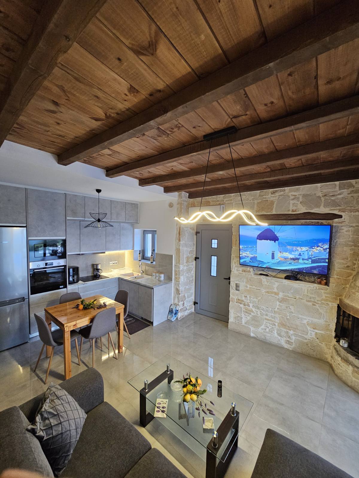 Villa Katerina to dom na podwójnym piętrze 62sq. Na pierwszym piętrze znajduje się jeden salon z kuchnią i dwoma pojedynczymi łóżkami. Na drugim piętrze znajduje się jedna sypialnia i jedna duża łazienka. Na jednym dużym podwórku znajduje się dwa balkony. Dom ma niesamowity widok na morze ze wszystkich pięter. Może pomieścić do 4 osób. Mamy też bar i hamak. Odległość od morza wynosi 200 metrów, a plaże to plaża Placa Orkos i plaża Mikrivigla Beach