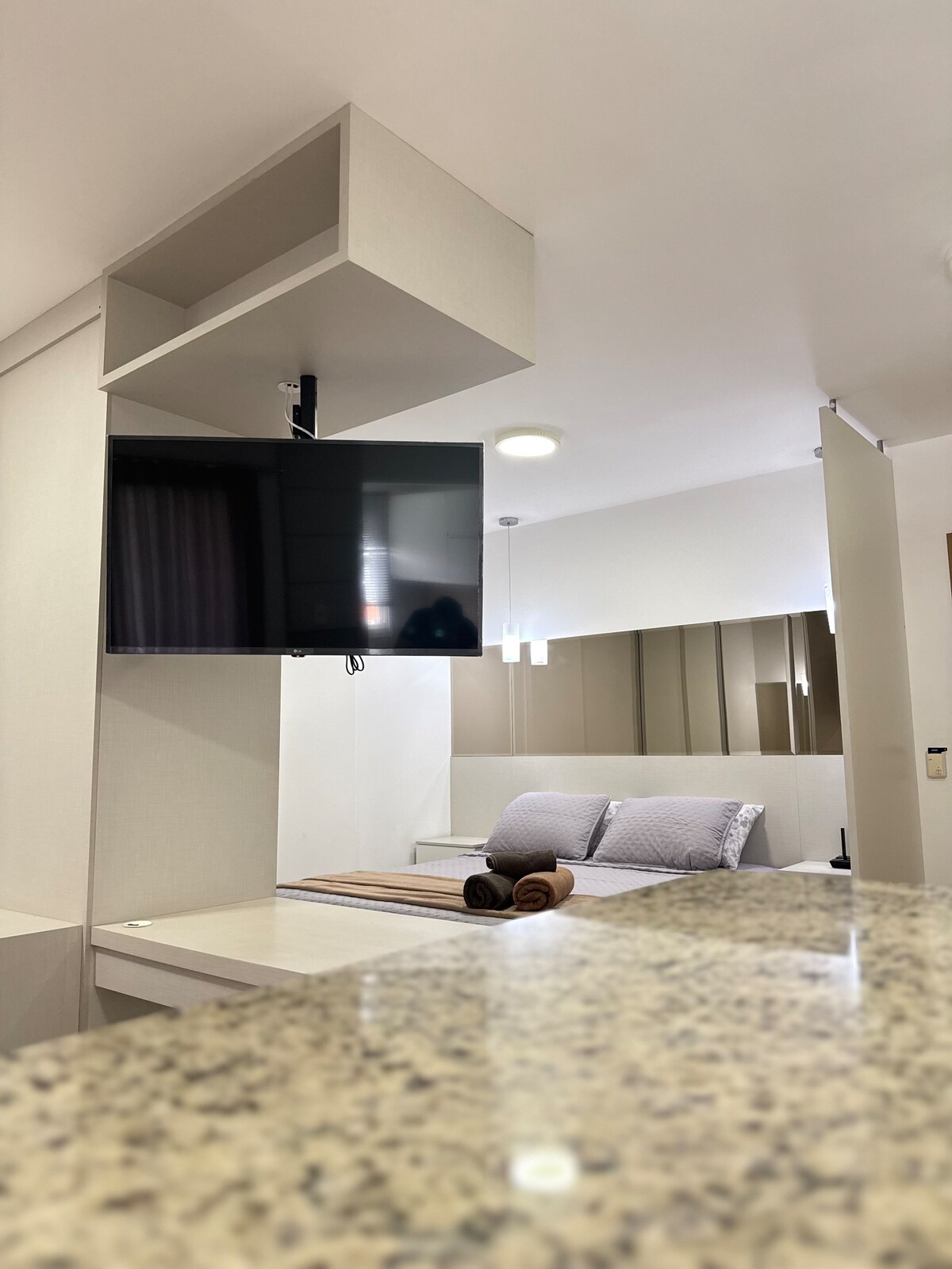 Haven Residence - stúdio ao lado da academia Smart Fit. Roupa de cama e toalhas incluso. Studio no 2º andar - acesso por escadas. Garagem (consultar disponibilidade), lavanderia, terraço com área de lazer e espaço Coworking. Os stúdios são integrados com Alexa, você pode ligar tv, ar condicionado, luzes e som por comando de voz - simples e tecnológico. Self check in com fechadura digital, conforto e praticidade!