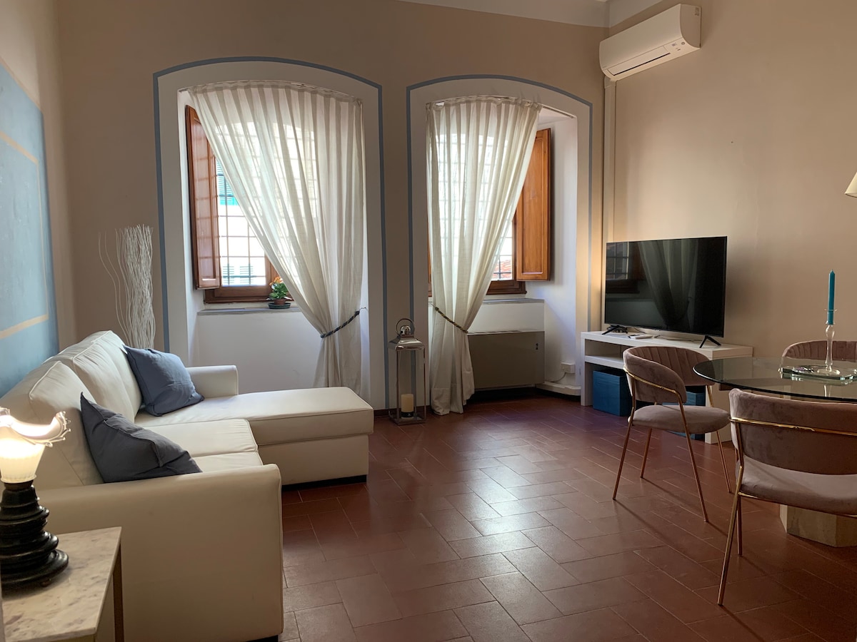 Ten wspaniały mały apartament znajduje się na najwyższym piętrze budynku sąsiadującego z Ponte Vecchio. Serce Florencji jest tuż pod Tobą; gdy tylko wyjdziesz przez frontowe drzwi, znajdziesz się kilka metrów od wspaniałego Piazza Signoria lub sugestywnej katedry Duomo i 10 minut spacerem od głównego dworca Santa Maria Novella. Z naszego tarasu, popijając kieliszek wina, będziesz mieć przed sobą wyjątkowy widok na cuda naszego miasta!