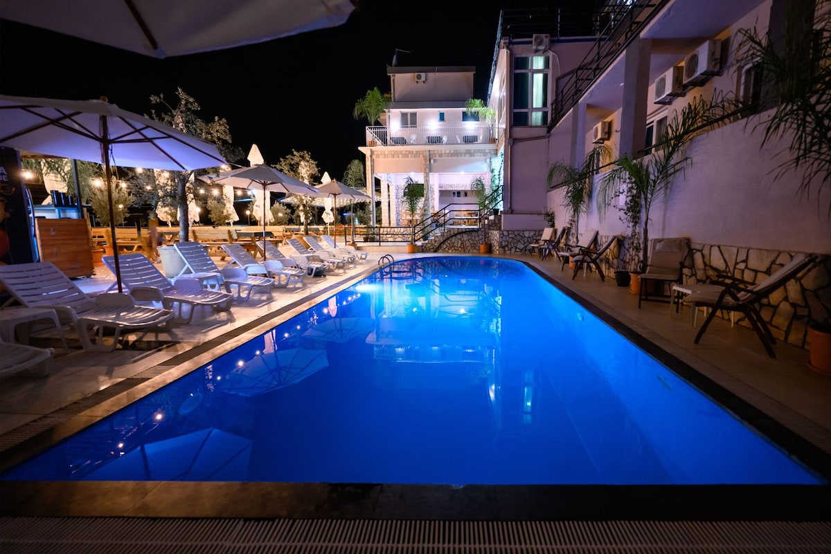 Ulcinj şehir merkezinde, Küçük Plaj’a yürüme mesafesinde ve tüm gece hayatının tam kalbinde yer alan butik otelimiz; konfor, merkezi konum ve aile sıcaklığını bir arada sunuyor. Kusursuz Konum Küçük Plaj’a birkaç dakikalık yürüme mesafesi Restoranlar, kafeler ve gece hayatına adım mesafesi Otobüs ve taksi duraklarına çok yakın konum Tatiliniz boyunca araca ihtiyaç duymadan her yere kolayca ulaşabilirsiniz. Otelimizde bulunan 4 özel süit oda, iki çift kişilik yatak komfor sunuyor.