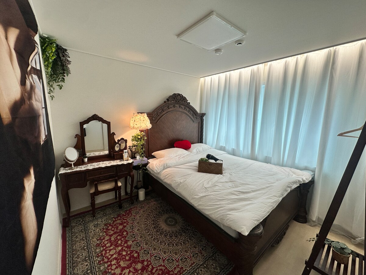 Dzień dobry. To zakwaterowanie znajduje się w Seomyeon (Jeonpo-dong). Jest to 30-pyeongowe zakwaterowanie położone 1 minutę spacerem od dworca kolejowego Jeonpo. Jest to miejsce na parterze i można do niego wygodnie przyjechać. (Brak ekspozycji w pomieszczeniach z zewnątrz) Znajduje się w centrum Busan Seomyeon i Jeonpo Cafe Street, a transport jest bardzo wygodny, więc możesz pojechać w dowolne miejsce w Busan w ciągu 30 minut. - Sklep spożywczy tuż przed miejscem zakwaterowania -1 min pieszo od stacji Jeonpo -1 min pieszo do restauracji i kawiarni -3 sypialnie -2 prysznice - 1 toaleta -3 średnie łóżka (może zapewnić jeszcze 2 łóżka typu queen) * filmowanie bramki CCTV (dodatkowa opłata w wysokości 20 000 KRW za wizytę inną niż wynegocjowana liczba osób) * Pies X (zmuszony do opuszczenia, jeśli zostanie złapany) * Przechowalnia bagażu dostępna w dniu zameldowania i wymeldowania Doświadcz pięknego Busan w naszym domu.