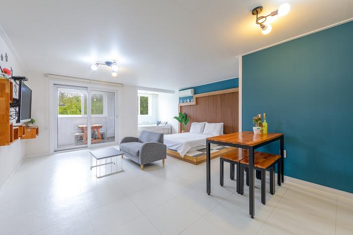 Z tarasu na 3 piętrze widać morze, a w odległości 5 minut spacerem znajduje się plaża Jujeon Mongdol