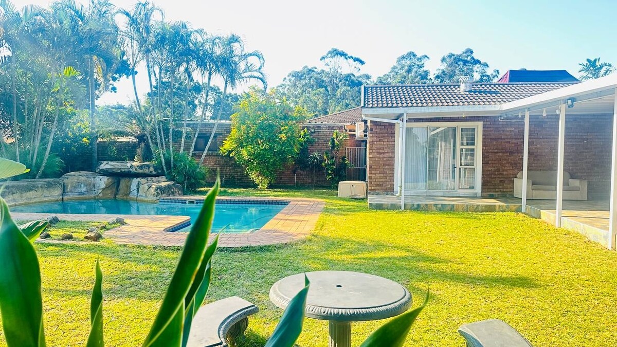 Ekskluzywny, spokojny domek ogrodowy w Mtunzini. Nowo wybudowane, eleganckie mieszkanie z ogrodem położone w spokojnej dzielnicy mieszkaniowej w Mtunzini. Zaprojektowane z myślą o komforcie i prywatności. Idealne dla gości szukających relaksującego pobytu lub komfortowej bazy do pracy z dala od domu. 2 przestronne sypialnie z łóżkami typu queen extra-length i duża nowoczesna łazienka. Otwarta kuchnia i część dzienna, która przechodzi w prywatny ogród, taras z wbudowanym grillem. Dużo miejsca, oddzielne wejście i bezpieczny parking pod zadaszeniem.