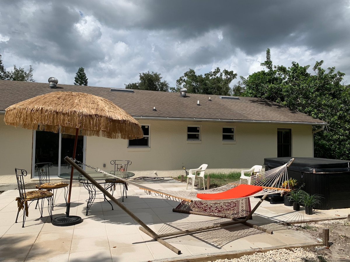 Contemporary retreat in nature. Plunge into the Cool Tub when the sun is out or turn the dial to heat the Hot Tub when the Moon is out. Blanchard Park is right outside with Riverside Walking / Biking Trails. Unique location that is very secluded but literally close to all major urban needs. Restaurants, UCF, Winter Park, Metro Orlando, Universal and Disney all within 5 minutes to 30 minutes.