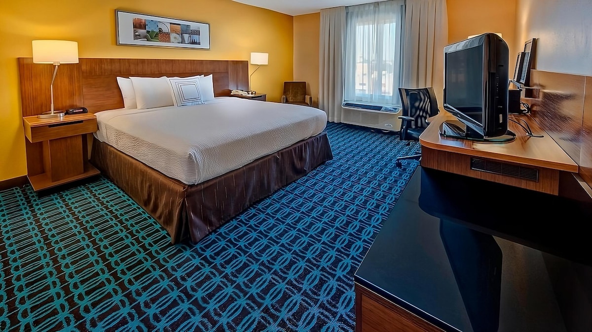 Nasze przytulne pokoje mają wszystko, czego potrzebujesz, aby produktywnie i relaksująco spędzić czas w tym słonecznym stanie. Nasz hotel zapewnia szybki dostęp do SeaWorld Orlando, Orange County Convention Center, The Florida Mall i Universal Studios Resort. Po przygodach zrelaksuj się w naszych przestronnych pokojach z darmowym szybkim Wi-Fi, telewizorami Smart TV i wygodną pościelą. The Market, nasz całodobowy sklep spożywczy, oferuje ulubione przekąski i napoje o każdej porze dnia. Nie oferujemy usług przewozu autobusowego.
