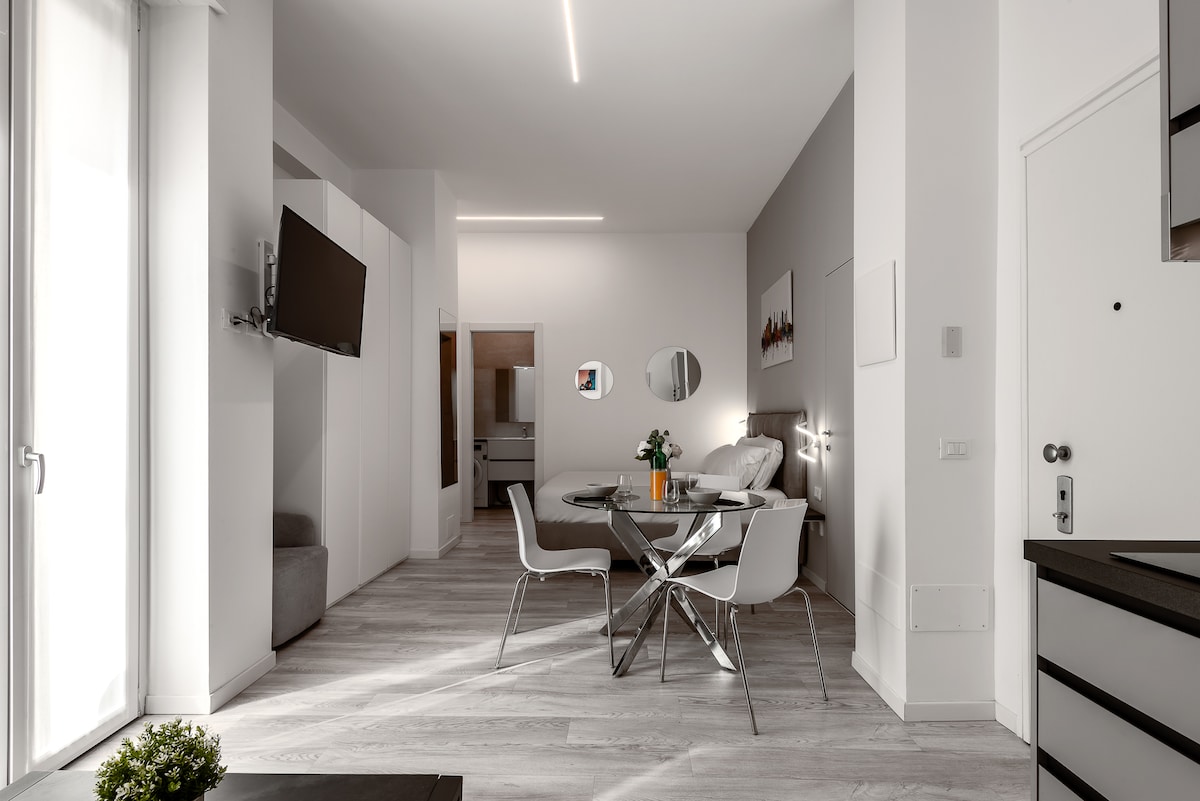 Imagine waking up in a designer loft, sunlight streaming through the large windows. Enjoy a coffee in your private outdoor space, then relax in the comfort of a modern, beautifully curated home. Perfect for a romantic getaway or a stylish business stay. Located in the heart of Milan, close to everything yet peacefully secluded. Here, your stay transforms into a one-of-a-kind experience.
