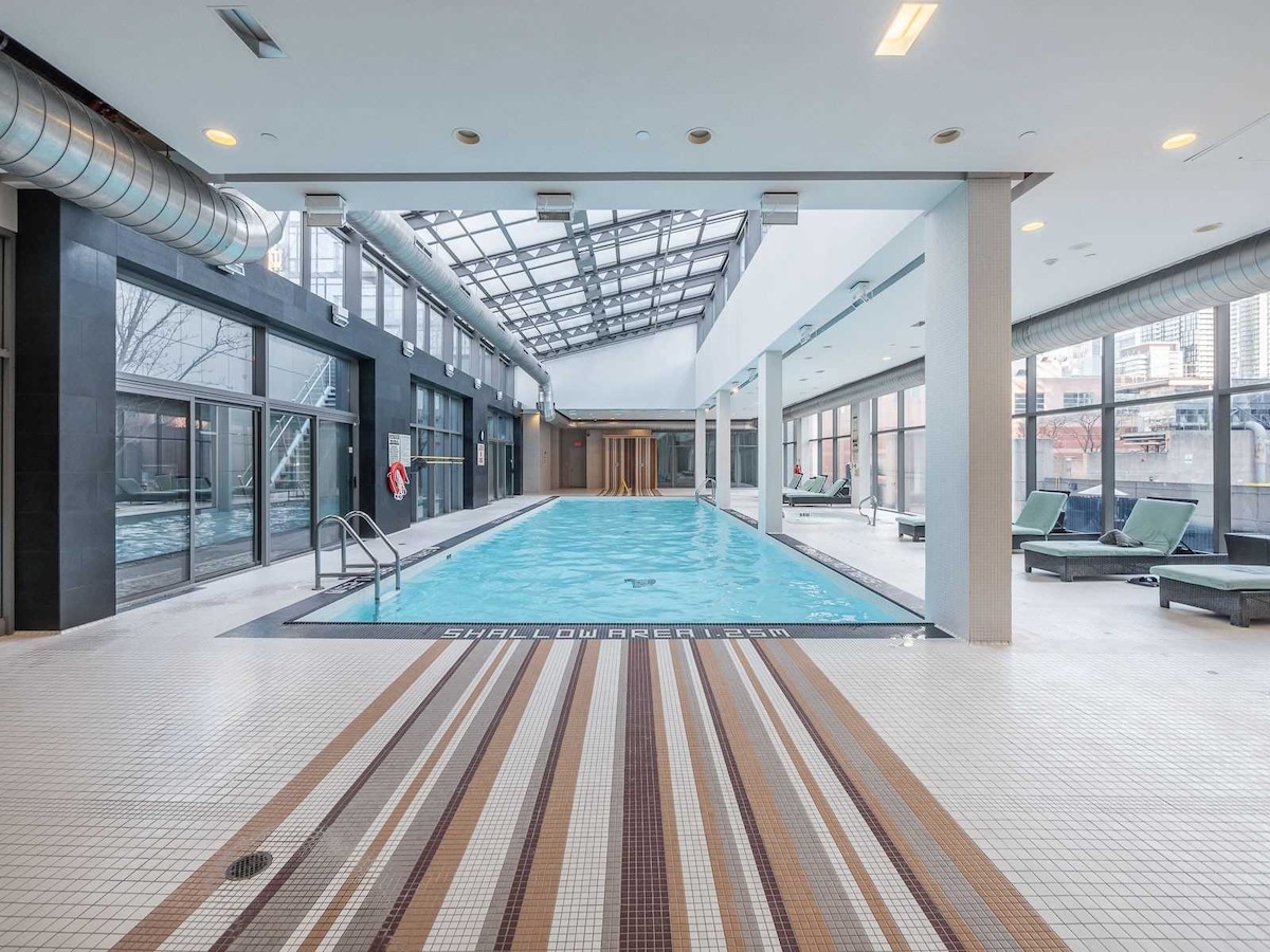 Doświadcz luksusu w tym apartamencie z jedną sypialnią o powierzchni 430 stóp kwadratowych na 28. piętrze w Yorkville. Wyposażenie obejmuje w pełni wyposażoną kuchnię, pralkę i suszarkę, szybkie Wi-Fi wysokiej jakości oraz płatny parking na życzenie. Apartament oferuje bezkontaktowe zameldowanie. Walk score: 98, Transit score: 96, Biker score: 95. Zaledwie 27 minut do lotniska Pearson, 9 minut jazdy do CN Tower i Scotiabank Arena oraz 4 minuty spacerem do Royal Ontario Museum. Ciesz się nowoczesnym życiem w mieście w doskonałej lokalizacji! 🎈Godzina zameldowania kończy się o 20:00,