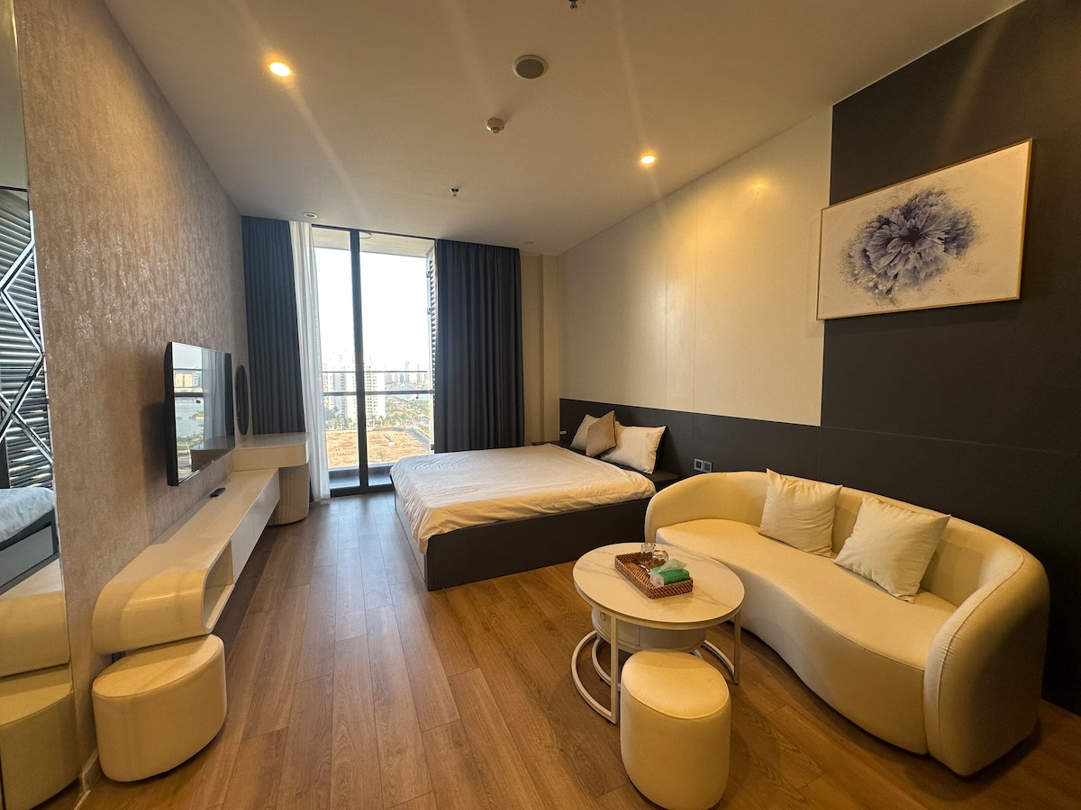 - Główną atrakcją jest pokój z widokiem na morze, w którym można napić się porannej kawy, obserwować jasny wschód słońca lub zrelaksować się przy romantycznym zachodzie słońca nad morzem. - Mieszkanie składa się z 1 sypialni, salonu łączącego kuchnię i jest odpowiednie dla pary lub małej rodziny. Wygodne meble: klimatyzacja, szybkie Wi-Fi, inteligentny telewizor, kuchenka... sprawiają, że czujesz się jak w domu, ale nadal dopełniają atrakcji kurortu. – Lokalizacja jest tuż obok plaży – zaledwie kilka minut spacerem, można już zanurzyć się w czystej, błękitnej wodzie.