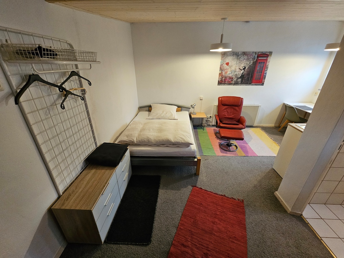 Kleines Gästehaus mit eigenen Garten und separaten Eingang - in Flughafennähe (10 Minuten mit der S-Bahn). Eigenes Bad und eine gut ausgestattete Küche mit Herd , Wohnzimmer im EG. Der Schlafbereich befindet auf der Galerie. Das Haus steht dem Gast alleine zur Verfügung.