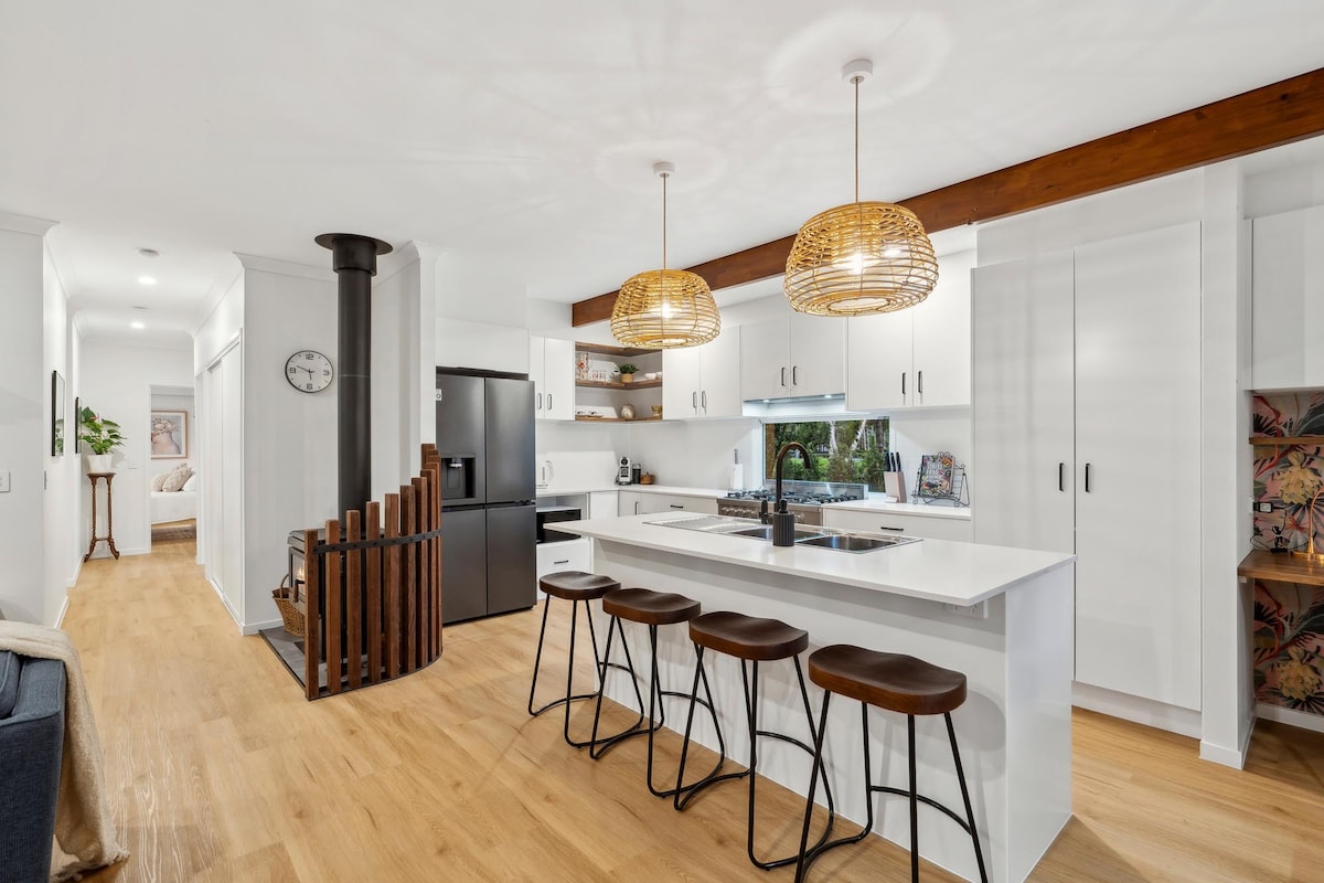 Experience tranquility in a beautifully appointed chapel nestled in the Gold Coast Hinterland. Relax on a romantic swing overlooking the pond and watch the stunning sunset. Cozy up by the fire or unwind with a soak in the claw bath . The mezzanine boasts a queen-sized bed and a single daybed with trundle, while the second bedroom offers flexible bedding arrangements, including a king-sized bed or two singles; please specify your preference. Additional rollaway beds and port a cot are available