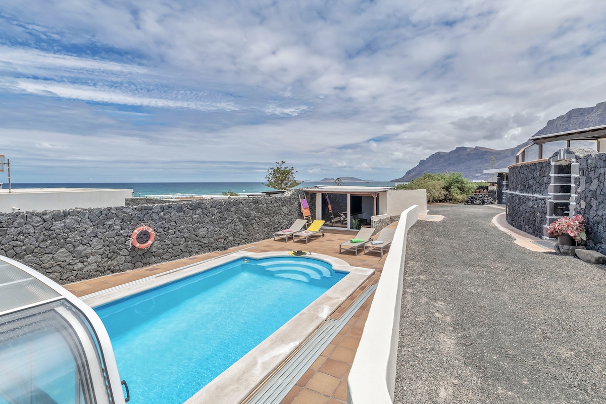 Wspaniały domek z kamienia lawowego ze wspaniałym widokiem na morze, idealny na relaks podczas wakacji. Położony kilka kroków od plaży Famara słynącej ze wszystkich sportów wodnych (5 minut spacerem). Ciesz się czasem spędzonym na ganku, słuchając dźwięków rozbijających się fal. W pobliżu znajduje się świetna restauracja, w której można się rozpieszczać.