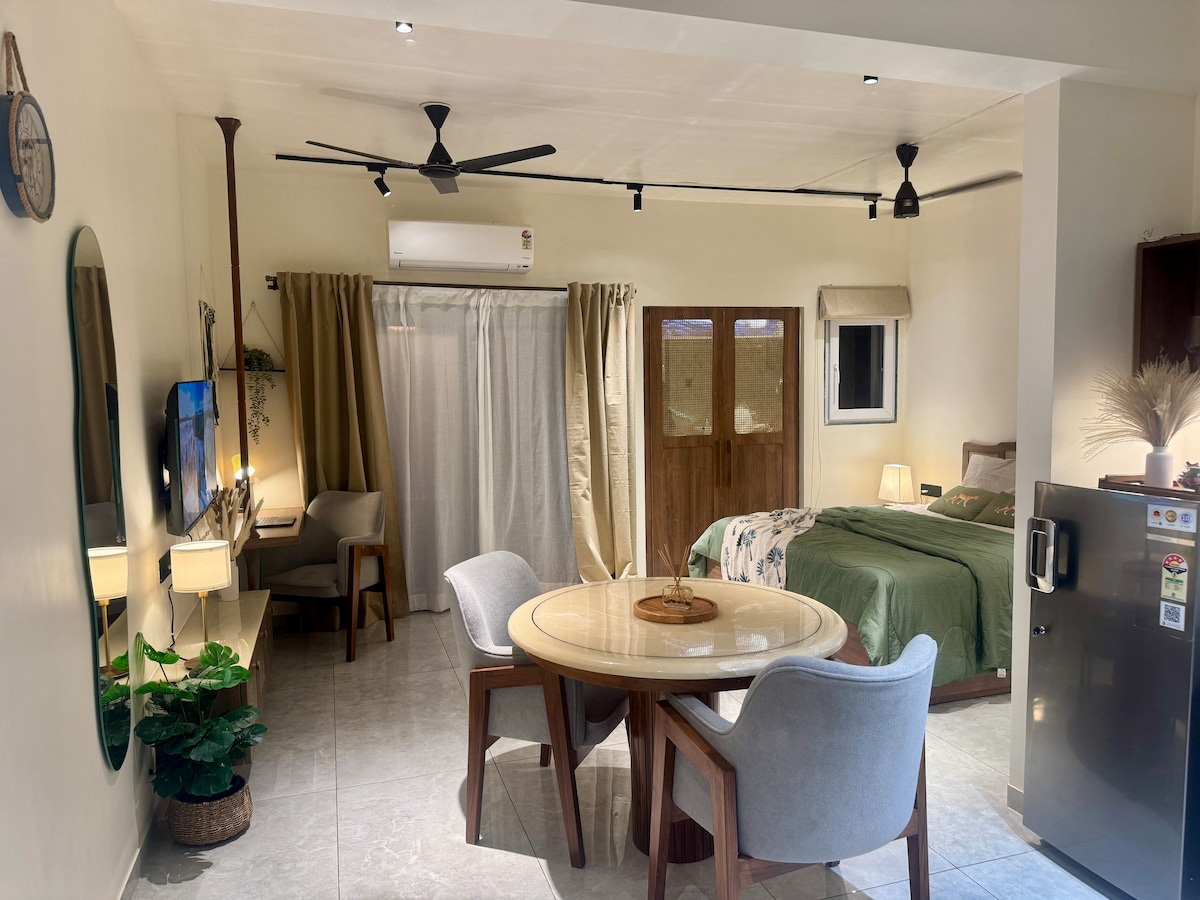 To spokojne studio znajduje się zaledwie 1 km od plaży Palolem. To idealne miejsce na wypoczynek w Goa Południowym. Przestrzeń została zaprojektowana z myślą o komforcie, wyposażona w klimatyzację, gorący prysznic, Wi-Fi, telewizor Smart TV i w pełni wyposażoną kuchnię. Codzienne sprzątanie (11:00–13:00) zapewnia czysty i relaksujący pobyt. Spędzaj poranki lub wieczory na prywatnym balkonie – tylko tam można palić. Idealne dla par lub osób podróżujących samotnie, które szukają przytulnego, wygodnego wypoczynku w pobliżu plaży.