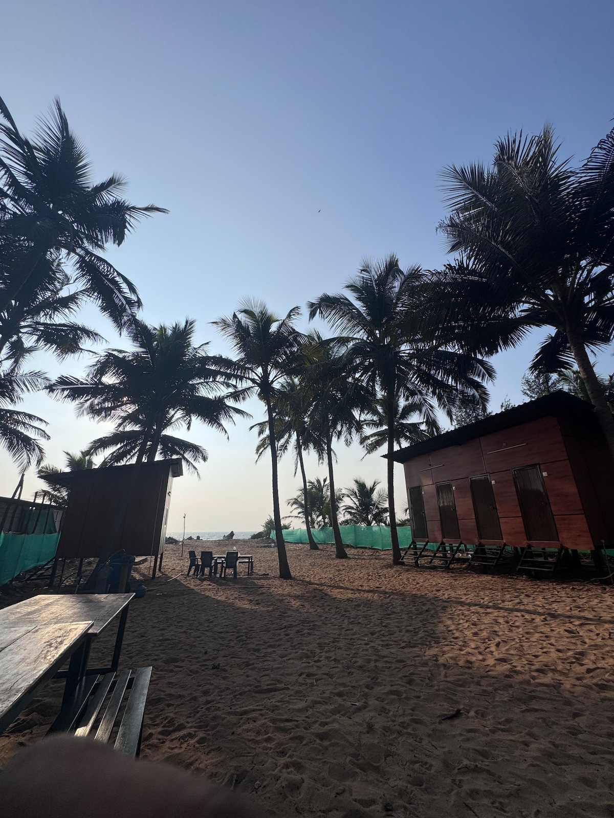 A camp site set under a canopy of green foliage and amidst the chirping's of birds.Custom made canvas tents pitched on a dedicated elevated platform with comfortable beds, clean sheets, fans, lighting and plug points to charge phones or laptop inside the tent and shared toilets and bathrooms maintained hygienically .Our Campsite is built around a mango tree which is lit ambiently during the night.We have an in house restaurant where we serve toothsome food...!!We are at Kudle hill top, Gokarna.