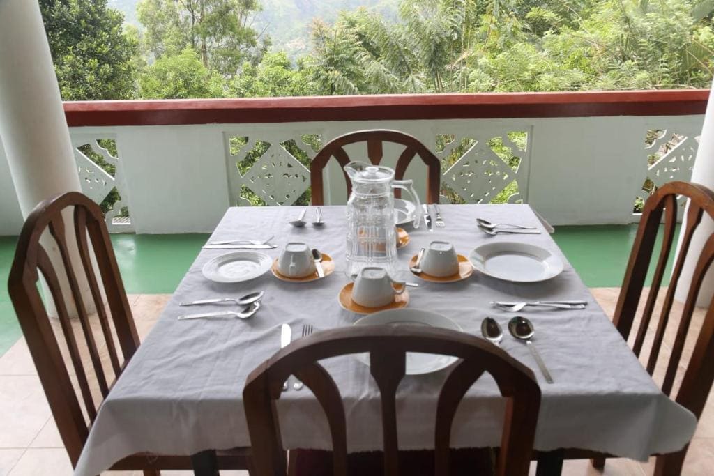 Certyfikowany przez Sri Lanka Tourist Board pobyt w domu prywatnym w pobliżu wodospadu Kuda Ravana Ella i widoków na góry. Klimatyzowany pokój z 2 podwójnymi i 2 pojedynczymi łóżkami, łazienką i ciepłą wodą. Zjedz kolację na świeżym powietrzu z malowniczymi widokami. Pralka i śniadanie (dodatkowa opłata w hotelu). Zaledwie 5 minut spacerem od miasta Ella, dworca kolejowego i Ogrodu Przypraw. Mały szczyt Adam's Peak znajduje się w odległości 2,5 km, a Most Dziewięciu Łuków – 4,3 km. Idealne dla turystów z plecakiem i małych grup.