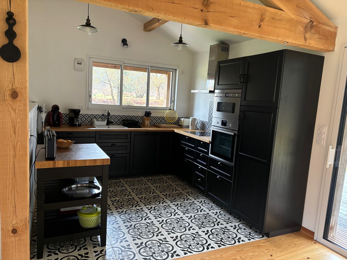 My place is a wooden house built by local carpenters with local timber. We use 100% renewable energy and even the waste is off grid. Situated in our 2 acre garden in a residential neighbourhood, opposite the pine forest. You can walk to the village for boulangerie and restaurants. We are 15 min from the Atlantic beaches of Contis. Our place is great for couples and families with kids! Come and unwind and connect with nature ! Sorry no pets :) Check out our other property- New Eco Lodge 2.