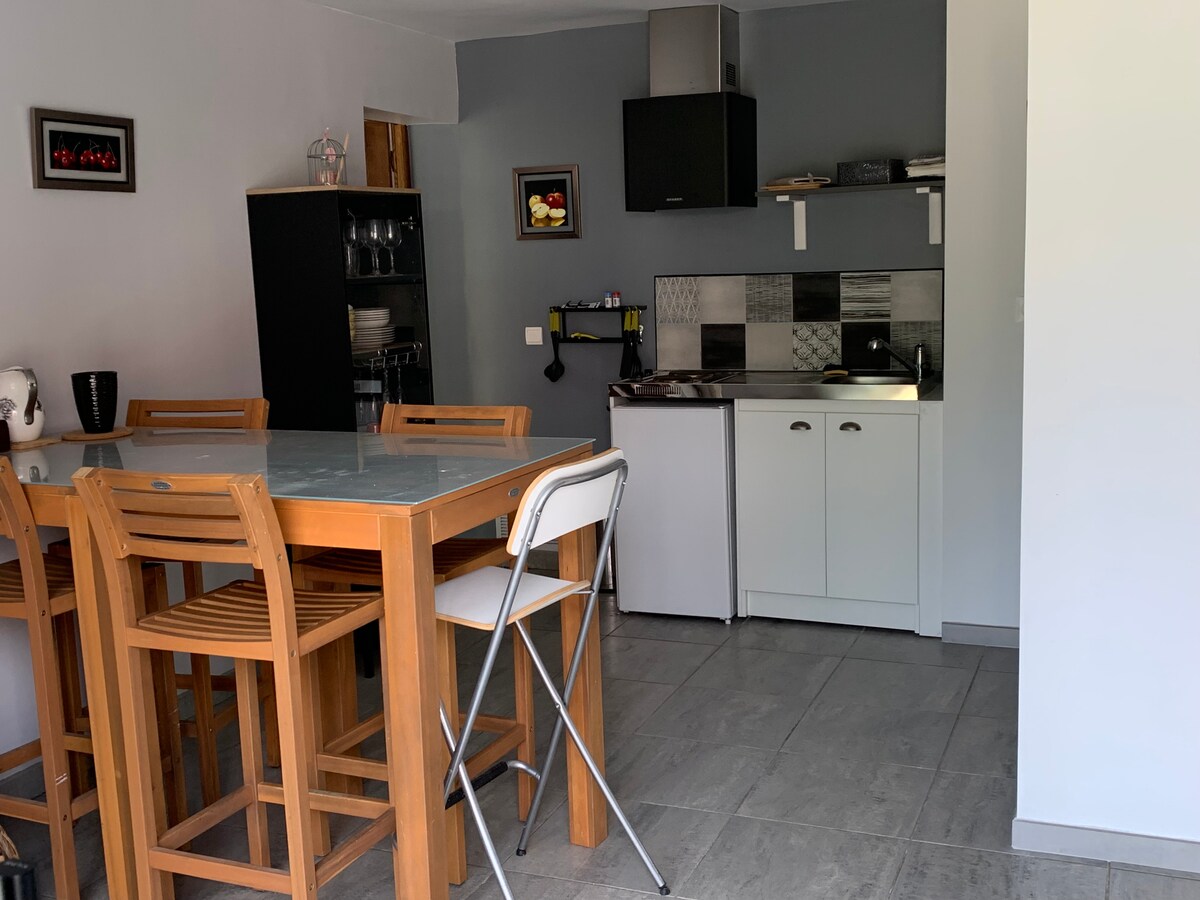 Zapraszamy do naszego nowoczesnego apartamentu, położonego w spokojnej okolicy, gdzie można odpocząć od zgiełku miasta. Znajdziesz tam w pełni wyposażoną kuchnię, wygodne łóżko 160x200, kabinę prysznicową i oddzielną toaletę. Możesz spacerować po ogrodzie o powierzchni około 300 m2, który przekształciłem w mini ogród z jadalnymi roślinami. Aby jeszcze bardziej uprzyjemnić Ci pobyt, mogę zaoferować kosz śniadaniowy, który pozwoli Ci jeszcze bardziej cieszyć się chwilą!