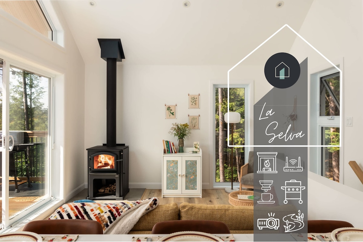 Welcome to La Khabine! This cozy, modern cabin comes with all you need to relax and connect with nature. Enjoy a glass of wine with the sound of a crackling fire in the wood burning fireplace. Take in the view of the forest through the surrounding floor to ceiling windows. Relax in the private outdoor cedar barrel sauna. Natural self-care products, firewood, laundry soap, and high-speed Wi-Fi are all complimentary. We hope you'll love our little cabin of windows as much as we do :)