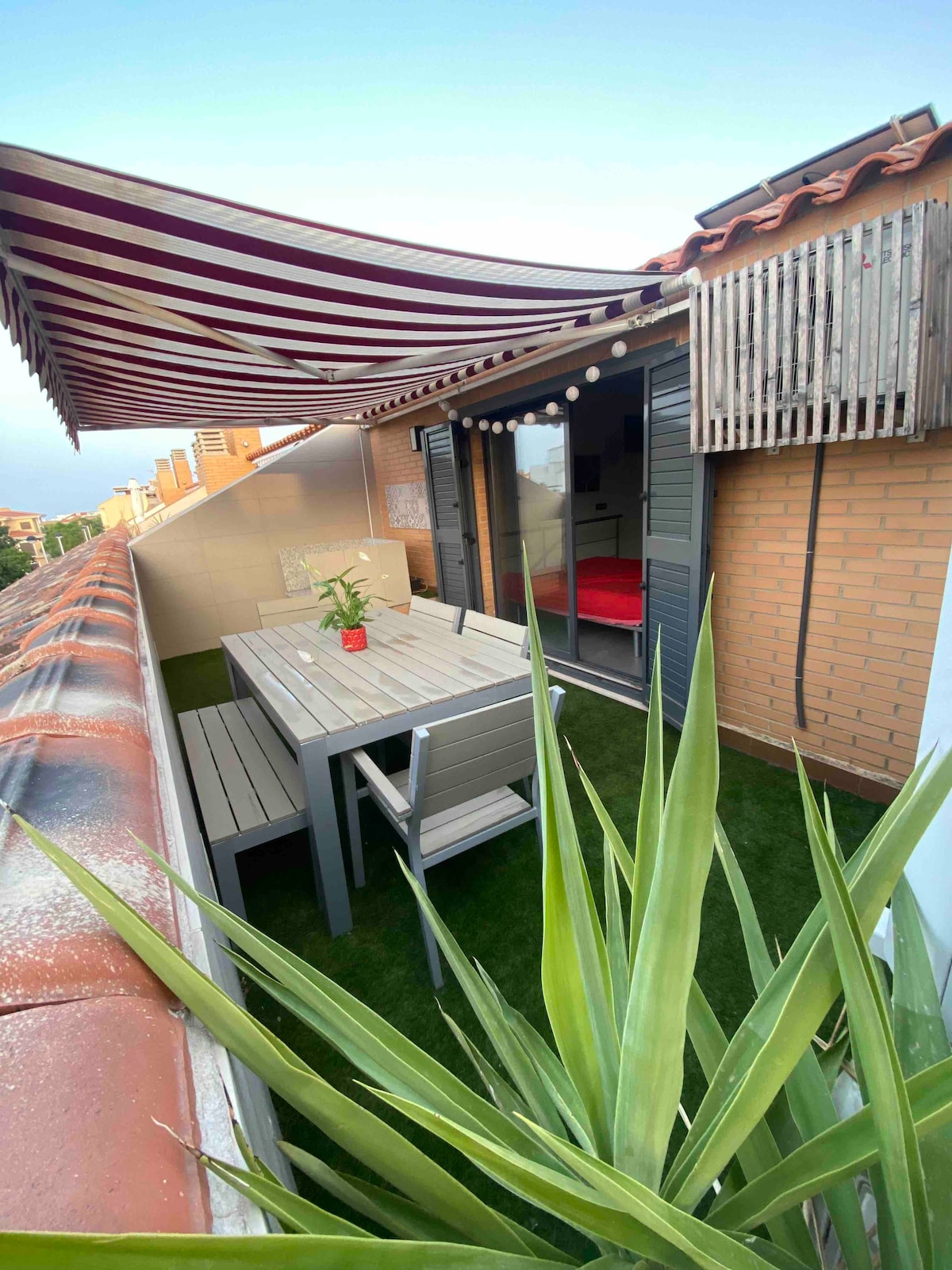 To nasz dom na emeryturze, chcielibyśmy wprowadzić się tu w przyszłości, ale mamy nadzieję, że w międzyczasie miło spędzisz pobyt w modnym Cabañal w Walencji. Dom pochodzi z 1942 roku, całkowicie odnowiliśmy go i podzieliliśmy na dwa domy R i M. R house znajduje się na niższym poziomie. Gdy wejdziesz, znajdziesz salon z jadalnią i kuchnię, wychodzą na patio i sprawiają, że jest to świetne miejsce do zabawy. Na patio znajduje się grzejnik, z którego można korzystać przez cały rok, ale w Walencji jest bardzo mało zimnych dni. Na górnym piętrze znajduje się salon z trzema pojedynczymi łóżkami (190x90). W salonie znajduje się mały korytarz, który prowadzi do dwóch sypialni. Pierwsza z nich ma łazienkę z prysznicem, a łóżko to 160x200. Druga sypialnia ma duże łóżko 160x 190. Obok znajduje się łazienka z wanną. Wchodząc do budynku znajduje się korytarz, w którym można znaleźć szafę, w której można zostawić bagaże na wypadek, gdybyś potrzebował wczesnego zameldowania lub późnego wymeldowania. Możesz również znaleźć suszarkę i pralkę. Jeśli potrzebujesz specjalnej usługi, daj nam znać, a my postaramy się jak najlepiej. Dom znajduje się w sąsiedztwie El Cabañal, nadmorskiej wioski z restauracjami, barami i targowiskami. Znajduje się w pobliżu plaży i portu, zaledwie 400 metrów od stacji metra, która ma pociągi jadące bezpośrednio do centrum miasta i na lotnisko.