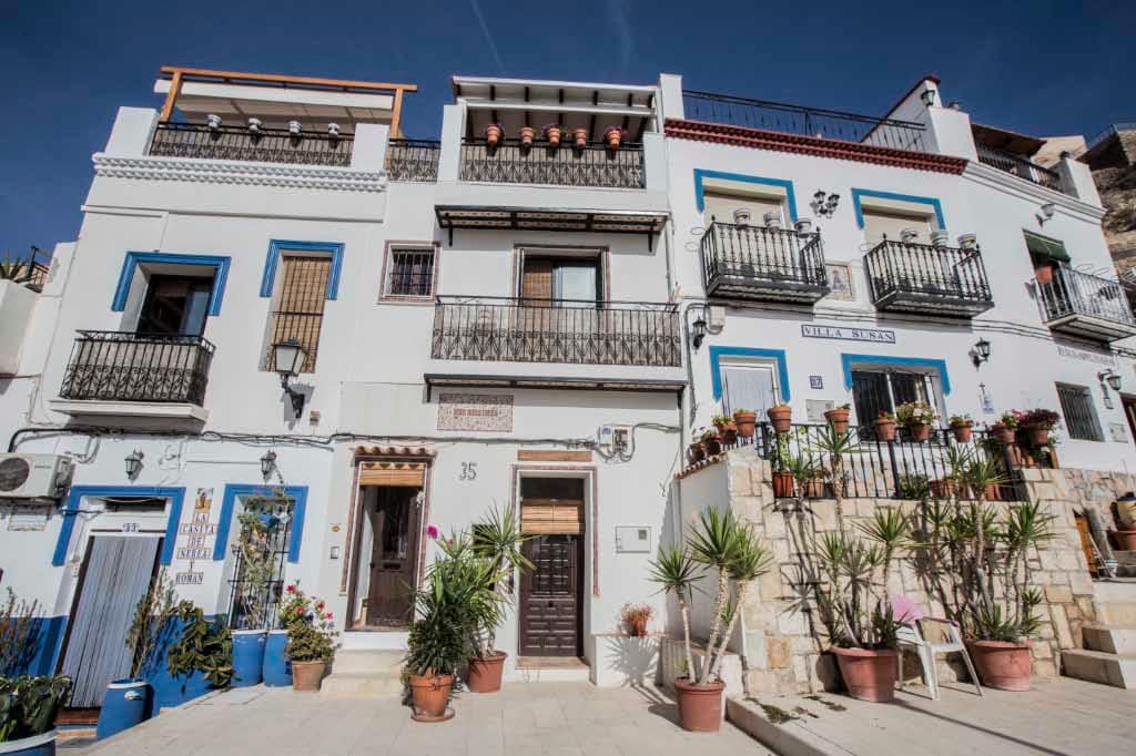 Romantic original Spain. Newly restored guest apartment with wonderful views over mountain, town and the Mediterranean Sea. Privilegely situated in charming pedestrian Santa Cruz, the Perl of Alicante. Cueva con vista is a street level studio. On the patio you are in direct contact with original Spain and its daily life. you see the tourists pass by and now and then a bride who wants a photo of her day. The view of the old town just below and the mediterranean sea is unique.