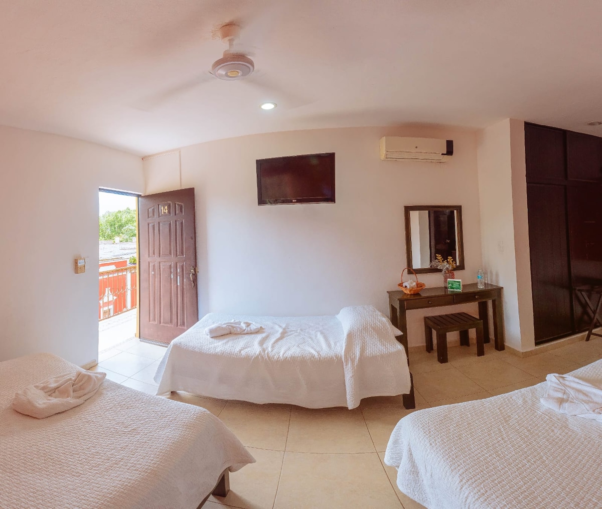 W Casa Yaxche chętnie przyjmiemy Cię jako gościa. Każdy obiekt został zaprojektowany z myślą o Twojej wygodzie, aby Twój pobyt był wyjątkowym i niezapomnianym doświadczeniem, w którym magia, kultura Majów i komfort łączą się w spektakularnym otoczeniu, którym możesz się cieszyć, a my z przyjemnością Ci pomożemy. Każdy pokój wyposażony jest w dwa podwójne łóżka, telewizję kablową, internet, wentylator sufitowy, klimatyzację, ciepłą wodę, szafę i własną łazienkę.