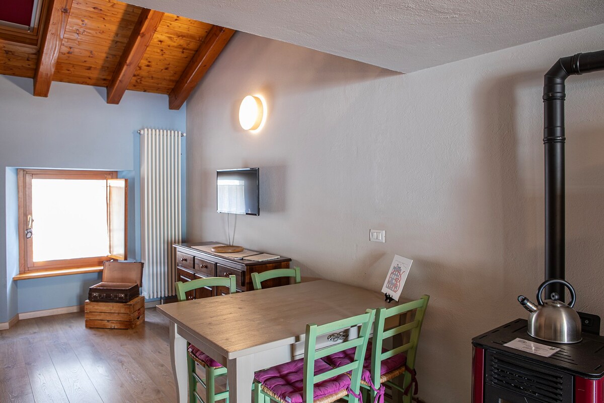 Przytulny i ciepły apartament w Aosty, przedostatnie piętro, winda, jasny, duży balkon z widokiem na południe i góry, w spokojnej okolicy, w otoczeniu wspólnego ogrodu. Idealne na zwiedzanie Aosty lub jako punkt wyjściowy do zwiedzania okolicznych dolin (7 minut samochodem do kolejki linowej Aosta-Pila). Supermarket z produktami organicznymi znajduje się w odległości mniejszej niż 80 metrów, a pizzeria-restauracja w odległości mniejszej niż 50 metrów. Składa się z sypialni, łazienki, wyposażonej kuchni, salonu z rozkładaną sofą, balkonu.