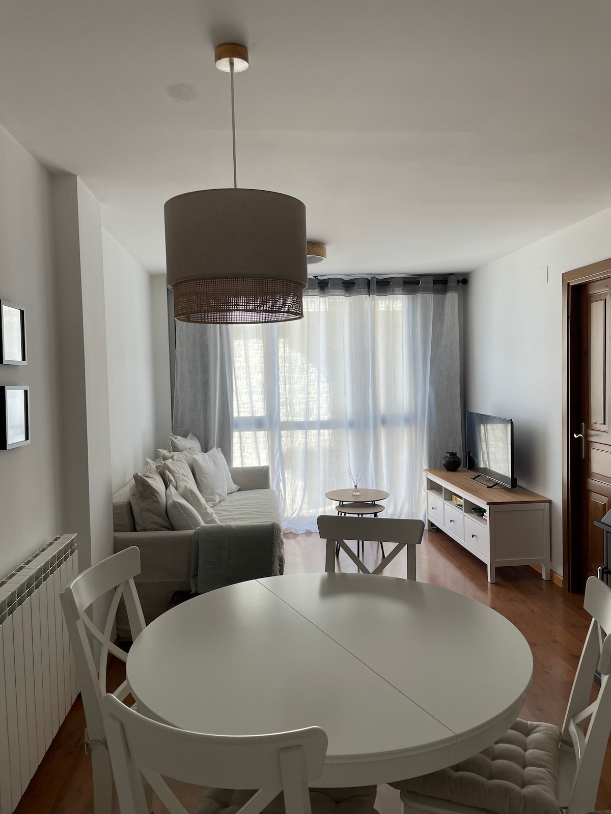 Apartament odnowiony w 2020 roku, 50 metrów dobrze rozmieszczonych, maksymalnie 4 miejsca. Pokój z łóżkiem o szerokości 150 cm z pościelą. Salon z rozkładaną sofą 150 cm i rozkładanym łóżkiem 80 cm, telewizor 50 cali podłączony do internetu. Kuchnia jest otwarta na salon i wyposażona we wszystkie niezbędne urządzenia. Łazienka jest niewielka, z brodzikiem, suszarką, ręcznikami, żelem... Dzielnica San Pedro jest bardzo spokojna i znajduje się 4 minuty od basenów, placów zabaw i centrum miasta.