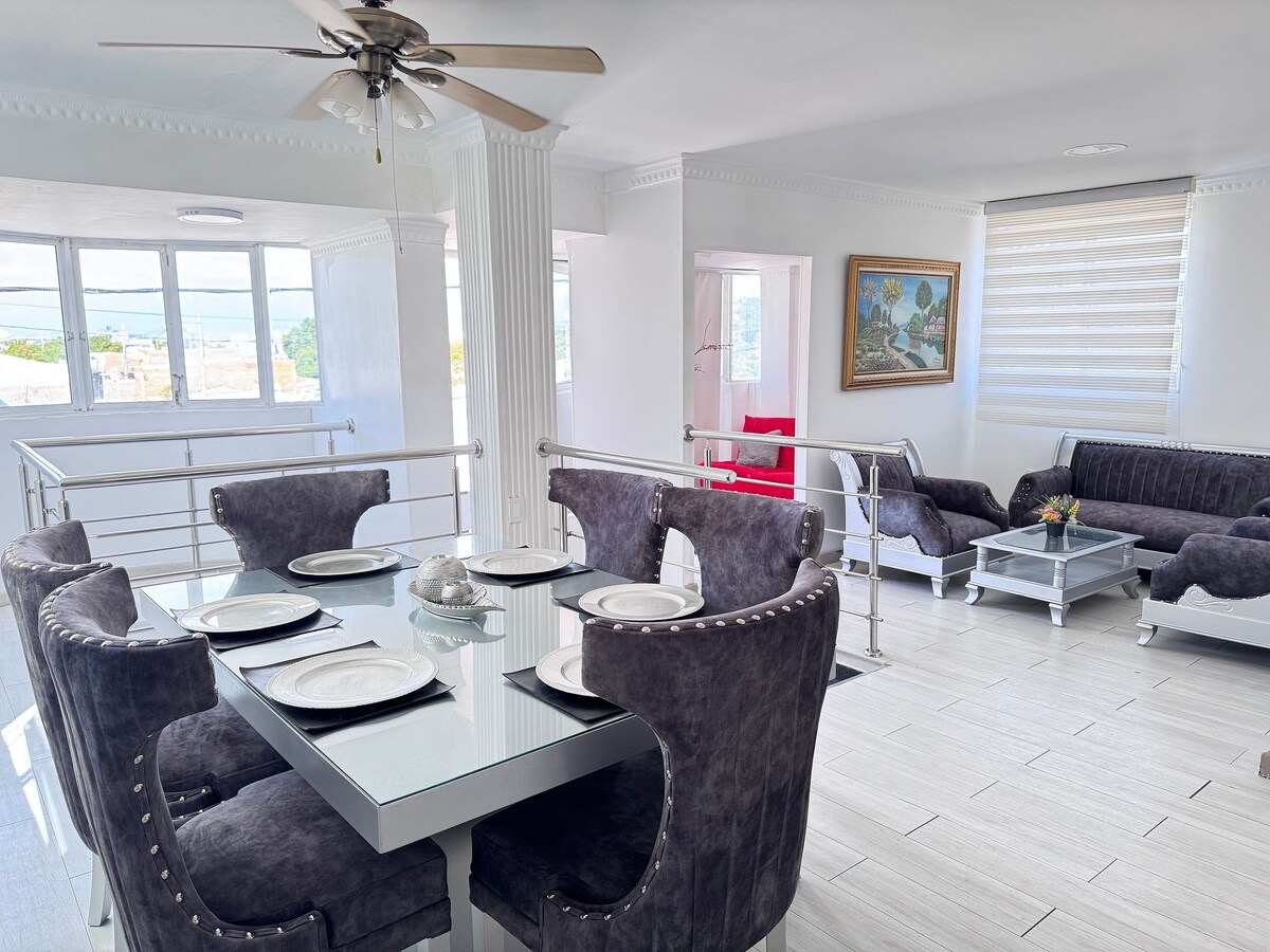 Ciesz się wieloma dniami lub miesiącami stylowego pobytu w tym centralnie położonym na drugim piętrze. znajduje się w północnej części miasta, w pobliżu centrum handlowego guatapuri i avenida principal los cortijos. 8 minut od Legend Park W przypadku festiwalu vallenato cena za noc dotyczy 8 gości bez dodatkowej opłaty.