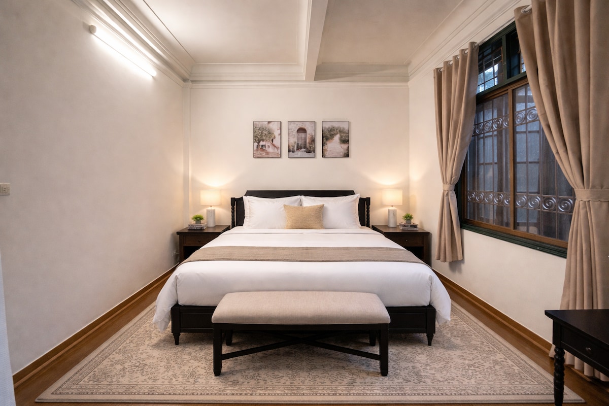 ♥️ A luxurious 350m² villa built in traditional Vietnamese architecture, spacious and elegant, ideal for groups of up to 12 guests. ♥️ Featuring a large shared space including a spacious living room and dining area for group gatherings, plus 4 private bedrooms, each with its own kitchen, bathroom, living room, and a wide balcony. ♥️ Located in the heart of the Old Quarter, just a short walk to Train Street, Hoan Kiem Lake, St. Joseph’s Cathedral, and Hoa Lo Prison.