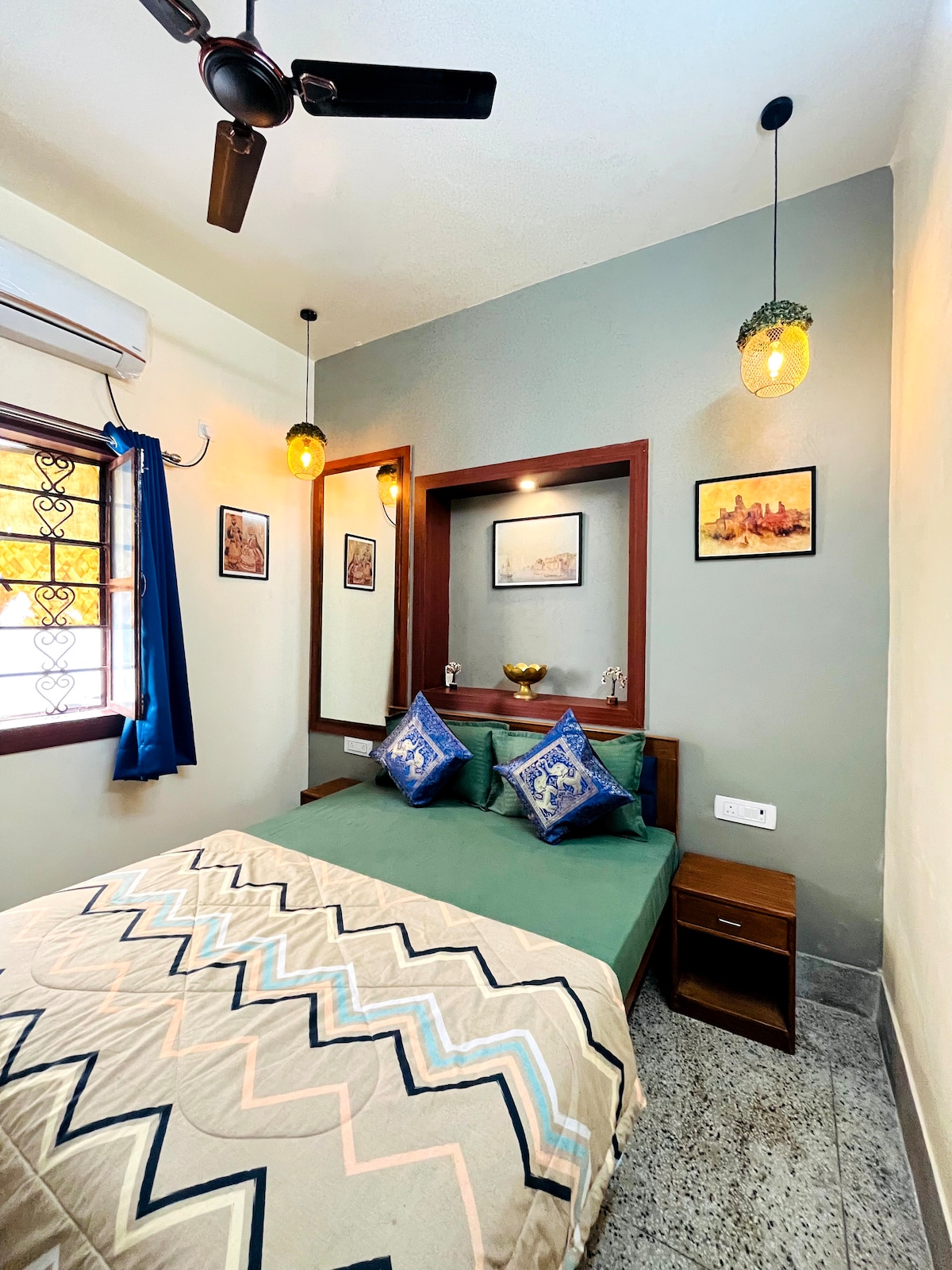 Welcome to our beautiful vintage-themed 2BHK in Varanasi Perfect for families and pilgrims seeking a clean, peaceful and comfortable stay after temple and ghat visits. Decorated with vintage and rustic furniture. Enjoy AC rooms, fast WiFi and a relaxing living area in a well-maintained home.” Authentic Banaras experience, the home blends traditional character. Prime Location • Just 7-10 mins ride to Kashi Vishwanath Mandir. • Only 7-10 mins ride to Dashashwamedh Ghat Available-OLA & UBER.