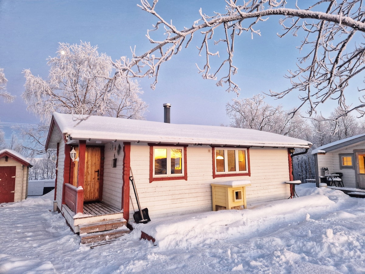 Mały domek z dużymi przeszklonymi oknami i widokiem na zorzę polarną. Sauna opalana drewnem i masażowe jacuzzi na tarasie, z którego można korzystać bezpłatnie. Zwierzęta są mile widziane, ale pobierana jest opłata za zwierzę. Mały domek z widokiem na zorzę polarną. Sauna z piecem opalanym drewnem. Luksusowe jacuzzi jest dostępne za darmo.
