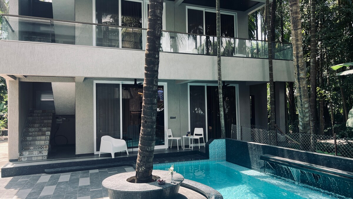 3 BHK Glass House z prywatnym basenem – 5 minut do plaży
