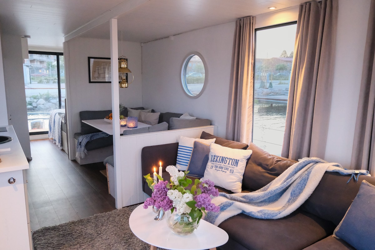 Relax in this unique and peaceful accommodation. Enjoy the sunset from the terrace and take a dip in the sea from your own jetty. During the day you can take a walk of about 10 minutes through the forest to one of southern Sweden's most beautiful beaches; Sandviken. If you want to listen to music, visit Strandcaféet where live music is offered several evenings a week during the summer months. A cycle path takes you to Sölvesborg in about 20 minutes. Or why not play a round of golf 4km away?