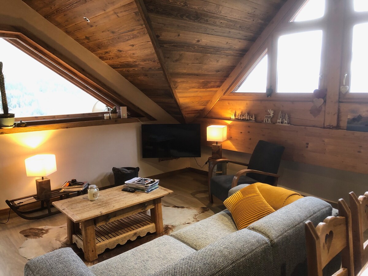Superb renovated chalet of 180m2 in a building with the charm of yesteryear outside, modern comfort inside. Sleeps up to 14 persons, 4 bathrooms, private jacuzzi in the private garden. 150m from the Alpette skilift (1250-2800m). There are 3 double bedrooms with private bathroom (beds can be separated on demand) and there is a large family room for 8 persons with own bathroom with 2 double beds, a sofa bed for 2 and, on a cozy mezzanine (accessible by ladder) 2 single beds.