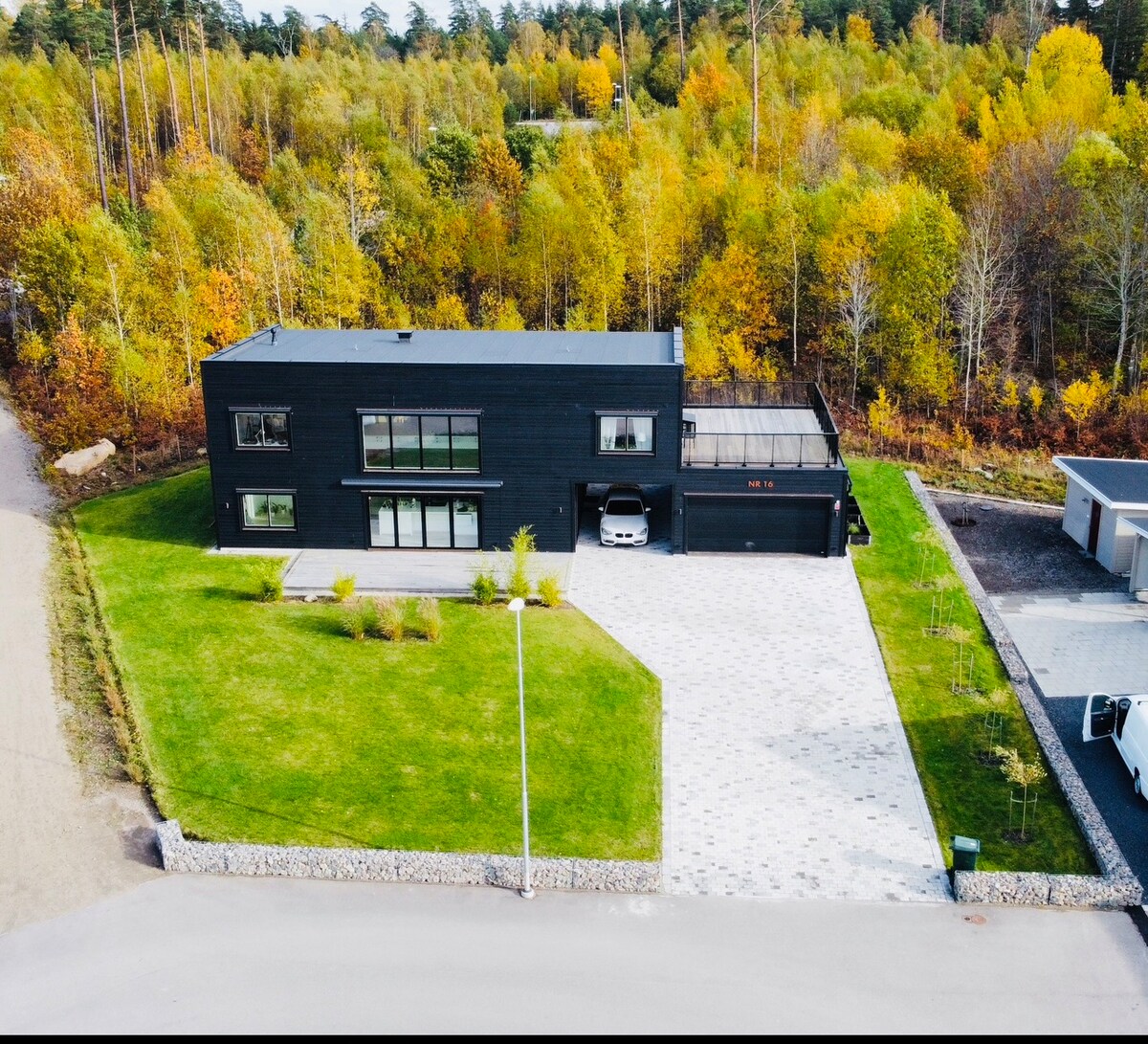 Nowoczesny i dobrze zaplanowany dom szeregowy w Vikaholm w południowej części Växjö. Tylko rzut beretem od połączeń autobusowych do centrum miasta autobusami miejskimi 5 i 7. Podróż autobusem do centrum miasta zajmuje około 15 minut. Dom ma wiatę z ładowarką i miejscem na 2 samochody. Jedna z sypialni jest urządzona jako biuro dla osób podróżujących służbowo. Dom jest również dobrze dostosowany dla osób podróżujących z dziećmi. Na działce znajduje się trampolina i dostęp do grilla. Blisko lasu i wsi, w odległości spaceru od Södra Bergundasjön.