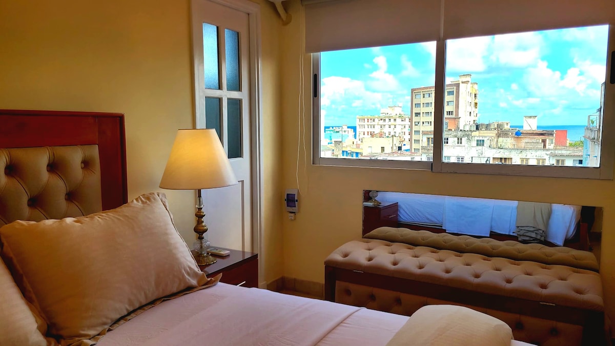 Centralny, nowoczesny i prywatny apartament z Wi-Fi, telewizorem Smart TV, w pełni wyposażoną kuchnią, klimatyzacją, pięknym widokiem na morze, 5 minut od Starej Hawany i 300 metrów od Malecón w Hawanie. W pobliżu sklepy z jedzeniem i napojami, restauracje serwujące wykwintne dania w bardzo dobrych cenach, kluby nocne, bary, dyskoteki, hotele. Apartament położony jest w prestiżowej dzielnicy Vedado. W pobliżu znajduje się przystanek autobusowy, z którego można dojechać do pięknej plaży Santamaria, oddalonej o zaledwie 20 km od Hawany.