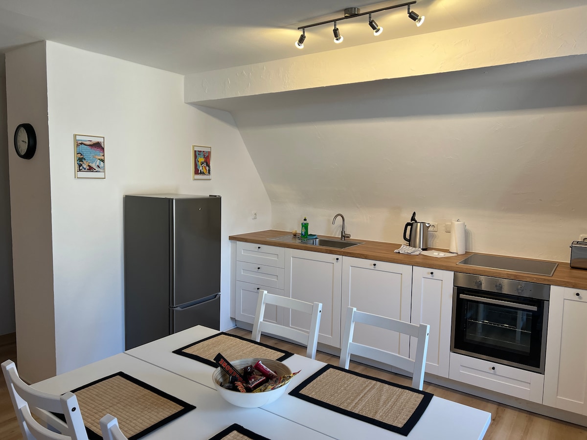Przytulny apartament dla 1-3 osób - łóżko 1,60 x 2m + rozkładana sofa 1,10 x 2m. Łazienka, kuchnia. Rdzeń odnowiony stary budynek z 1895 roku. Doskonała lokalizacja: - Piekarnia/supermarket 200 metrów - Hauptbahnhof Fürth / U-Bahn 500 metrów (Messe Nürnberg 20 min., Lotnisko Norymberga 30 min., Centrum Norymbergi (Christkindlesmarkt) 15 min.) - Restauracje / Kawiarnie/ Kino/Mila zakupowa 200 - 500 metrów - Pralnia obok - Dobre połączenia autostradowe - Funpark Playmobil 15 minut samochodem