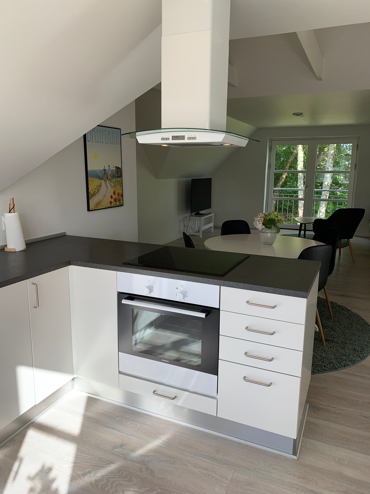 Nowo wyremontowany duży pokój w oddzielnym budynku na terenie gospodarstwa rolnego. Oddzielne wejście. Dom składa się z salonu/kuchni, sypialni i łazienki. Łącznie 30 m2. Wszystko w jasnych i przyjaznych materiałach. Jest lodówka, piekarnik/mikrofalówka i płyta indukcyjna. Mieszkanie jest wyposażone we wszystkie niezbędne naczynia kuchenne, szklanki i sztućce. Istnieje możliwość wypożyczenia Chromecasta.