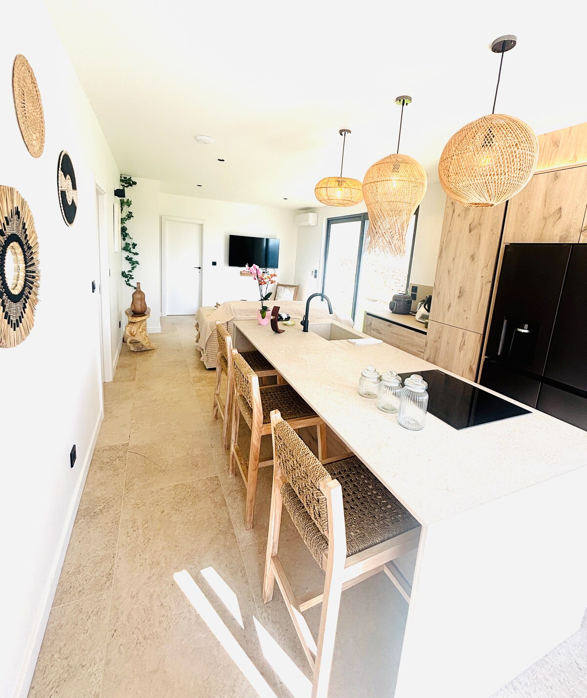 Entre Aix-en-Provence et le Luberon, découvrez ce bel appartement de 45 m² entièrement rénové ✨. Situé dans une maison au charme provençal 🏡, il offre une entrée indépendante et une grande terrasse privative de 30 m², sans vis-à-vis 🌿. Détendez-vous en profitant de la vue sur la campagne aixoise et du calme environnant ☀️🐦. Vous pourrez profiter d'un jeu de boules au milieu des arbres. Le canapé convertible de 140x190 est doté d'un matelas air gel très confortable