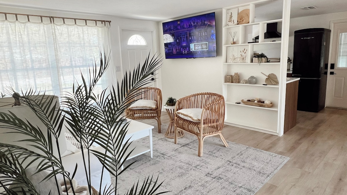 Położony w pożądanej społeczności Venice Garden w spokojnej okolicy, gdzie nie wiadomo, czy jest to weekend, czy dzień powszedni. Kuchnia jest w pełni wyposażona, łóżka są niesamowicie wygodne, rozkładana kanapa i kanapa są idealne do relaksu. Wszystko, czego potrzebujesz na plażę, jest wliczone w cenę wynajmu. Prywatne ogrodzenie na podwórku pozwala monitorować swojego zwierzaka podczas wypijania kawy. Korzystaj z konta Netflix dla gości i szybkiego internetu od XFINITY, wszystko wliczone w cenę wynajmu.