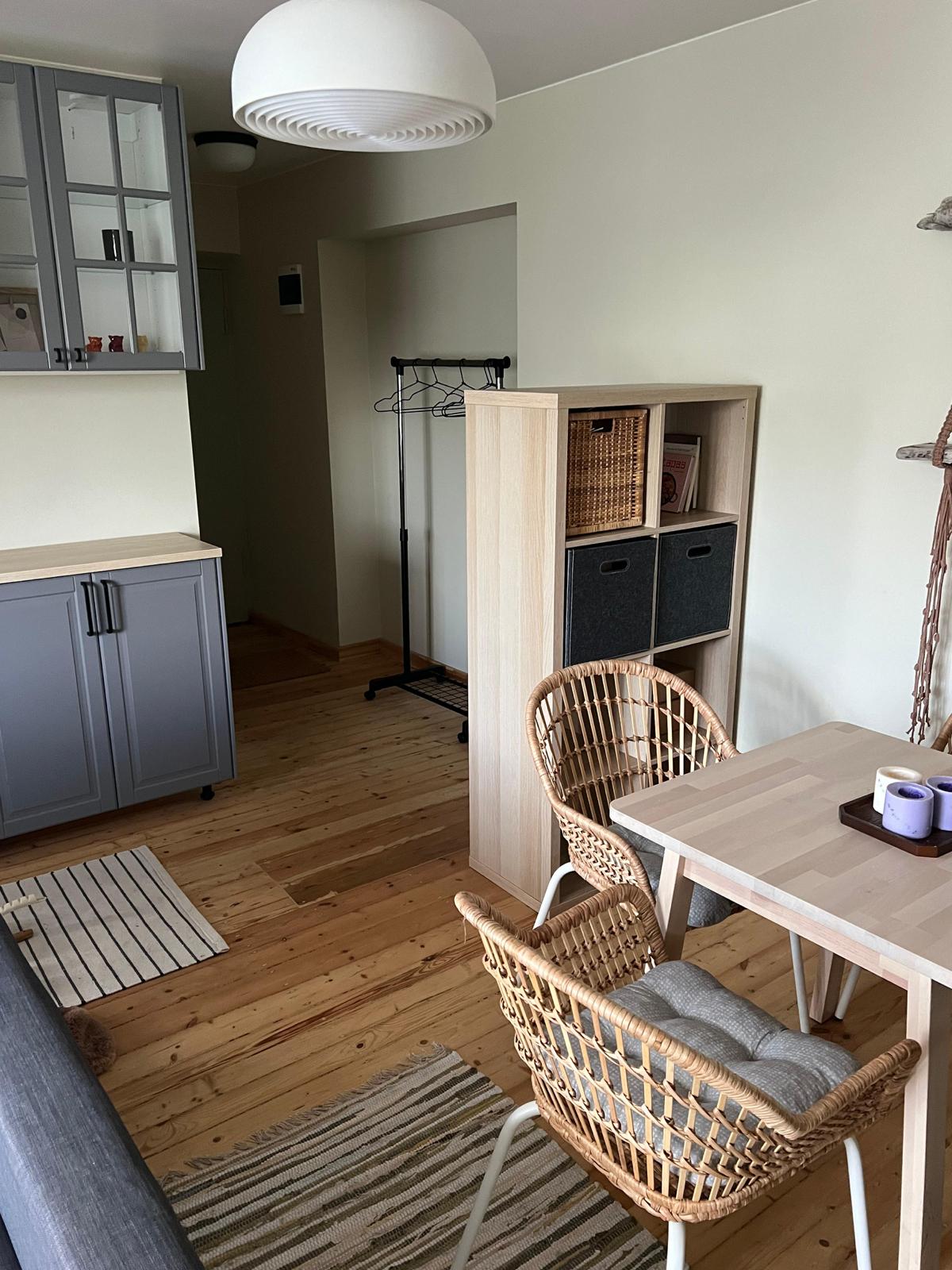 Świeżo odnowiony i odnowiony apartament, 10 minut spacerem od centrum Ventspils. Idealne dla rodziny z dziećmi, może pomieścić do 5 osób. Posiada sypialnię z łóżkiem typu queen size, a także salon z dwoma sąsiednimi łóżkami - jedno podwójne łóżko i jedno pojedyncze łóżko (idealne dla pary z dzieckiem). Zmywarka do naczyń w zestawie, a także wszystkie niezbędne rzeczy do gotowania w domu.