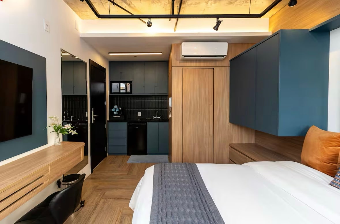 Estúdio recém inaugurado no bairro da Liberdade, oferecendo conforto, design e modernidade para quem busca uma experiência genuinamente paulistana. O local está equipado com aparelhos de primeira linha, decorado com mobiliário exclusivo e peças escolhidas cuidadosamente, combinando os estilos urbano e étnico. Todos os detalhes do imóvel foram concebidos pensando no bem estar de seus hóspedes! O edifício foi inaugurado em maio de 2020 e conta com portaria 24h, lavanderia e áreas ajardinadas.