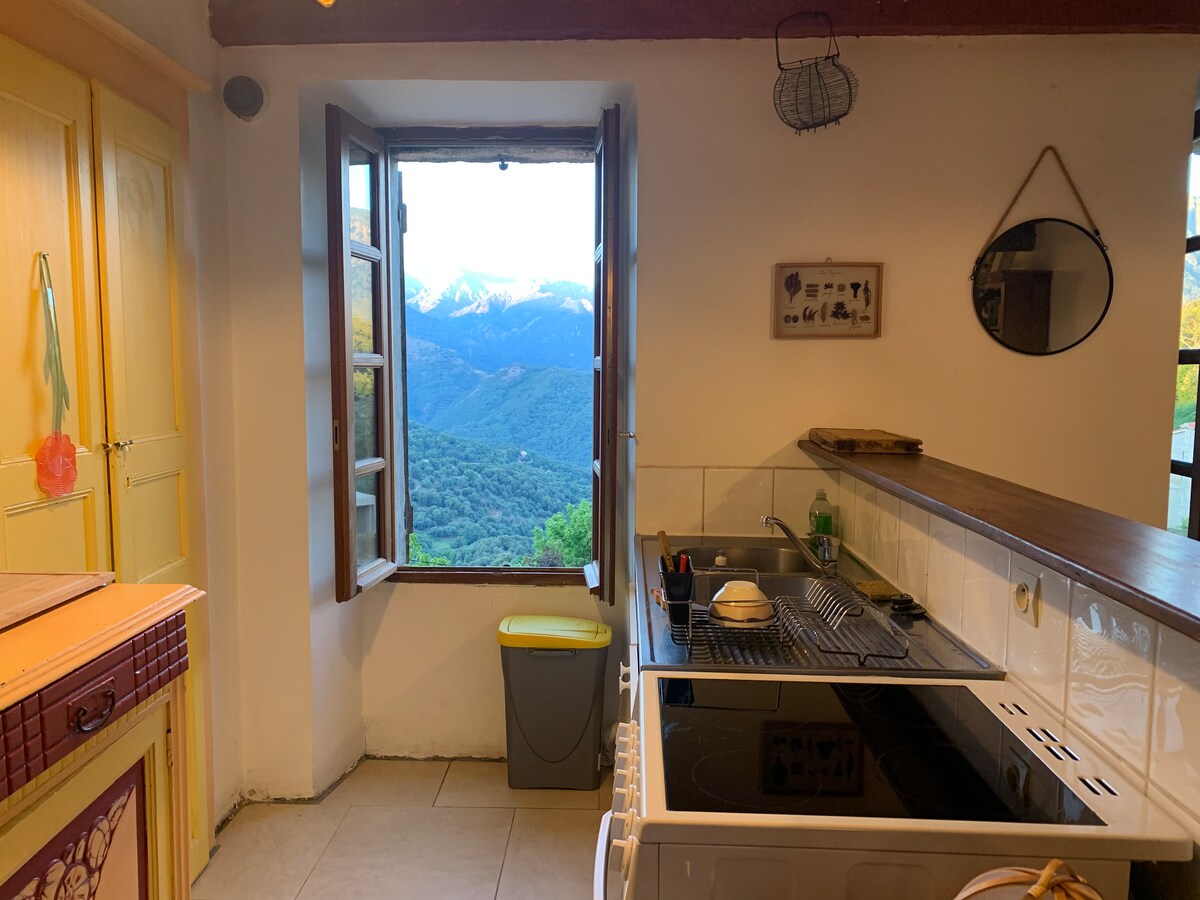 Demeure de charme en pierre de la région entièrement construite par le propriétaire respectueuse de l'environnement entre mer, montagne et piscine (classement 5 étoiles ). A 5 mn des fameuses Gorges de l'Asco, rivière, cascades . A 25 mn des plus belles plages de Balagne, Ostriconi, Lozari. Dans un site préservé, au calme absolu avec une vue superbe .Ce logement est parfait pour une escapade en amoureux avec un accès privatif à la piscine à débordement des propriétaires. Internet fibre