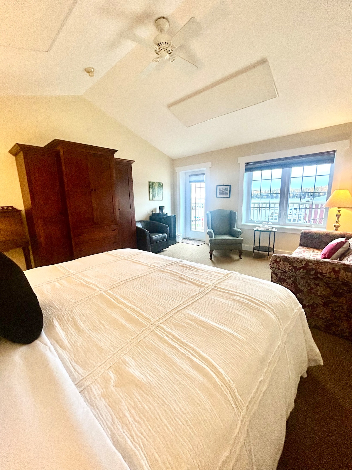 Escape to our beautiful King Room in scenic Ben Eoin, Cape Breton, Nova Scotia, where lakeside meets world-class comfort. Our King Room is conveniently at The Lakes Golf Club & Resort, providing golfers with access to a world-class 18-hole course right outside your door. Also located at the base of Ski Ben Eoin - so something for all seasons! The King Room features a King bed, a spacious living area and a modern bathroom. Located in the main Clubhouse.