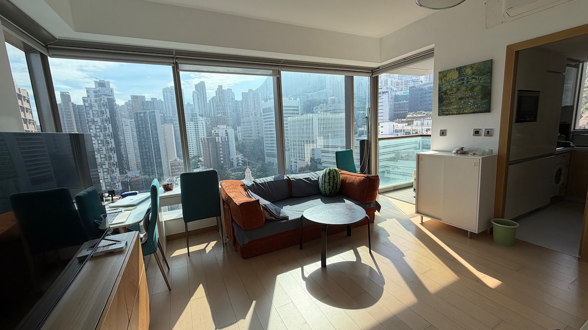 Modern seaview apartment in trendy Kennedy Town — just 15 minutes from Central. Spacious 1-bedroom with full kitchen (oven, dishwasher, washer/dryer) and a rare private patio perfect for sunset dinners and Disneyland fireworks. All rooms enjoy stunning sea views. 3-min walk to MTR, 1-min to tram, steps from the harborfront running trail, and 10-min walk to the Hong Kong Island hiking trailhead. Peaceful, safe neighborhood with great cafés and restaurants. A perfect base to explore Hong Kong.