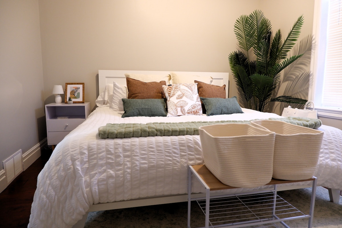 Witamy w naszym zachęcającym apartamencie z 1 sypialnią i 1 łazienką w pobliżu centrum miasta! Do dyspozycji gości jest prywatny balkon z widokiem na rzekę Tamizę i piękny szlak bezpośrednio za domem. Wszystkie udogodnienia, Wi-Fi, pralnia i Netflix wliczone w cenę. Ciesz się wygodą pobytu w pobliżu centrum Londynu. 10-15 minut spacerem do Budweiser Gardens, centrum miasta i 5 minut jazdy do Western University.