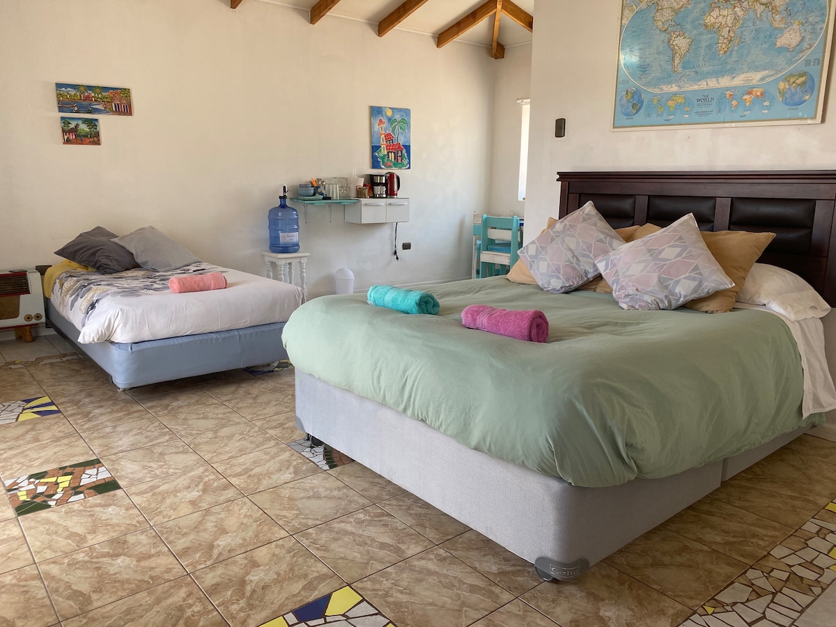 Zanurz się w uroku tej romantycznej przestrzeni położonej w samym sercu Elqui Valley. Nasz nowoczesny, harmonijnie zaprojektowany loft oferuje komfortowy pobyt, w idealnej harmonii z naturą. Stąd możesz zastanowić się nad najczystszym i najbardziej rozgwieżdżonym niebem, co sprawi, że Twoja atrakcja będzie wyjątkowym miejscem na wypoczynek, znając różne historyczne centra o wspaniałym dziedzictwie i walorze kulturowym okolicy.